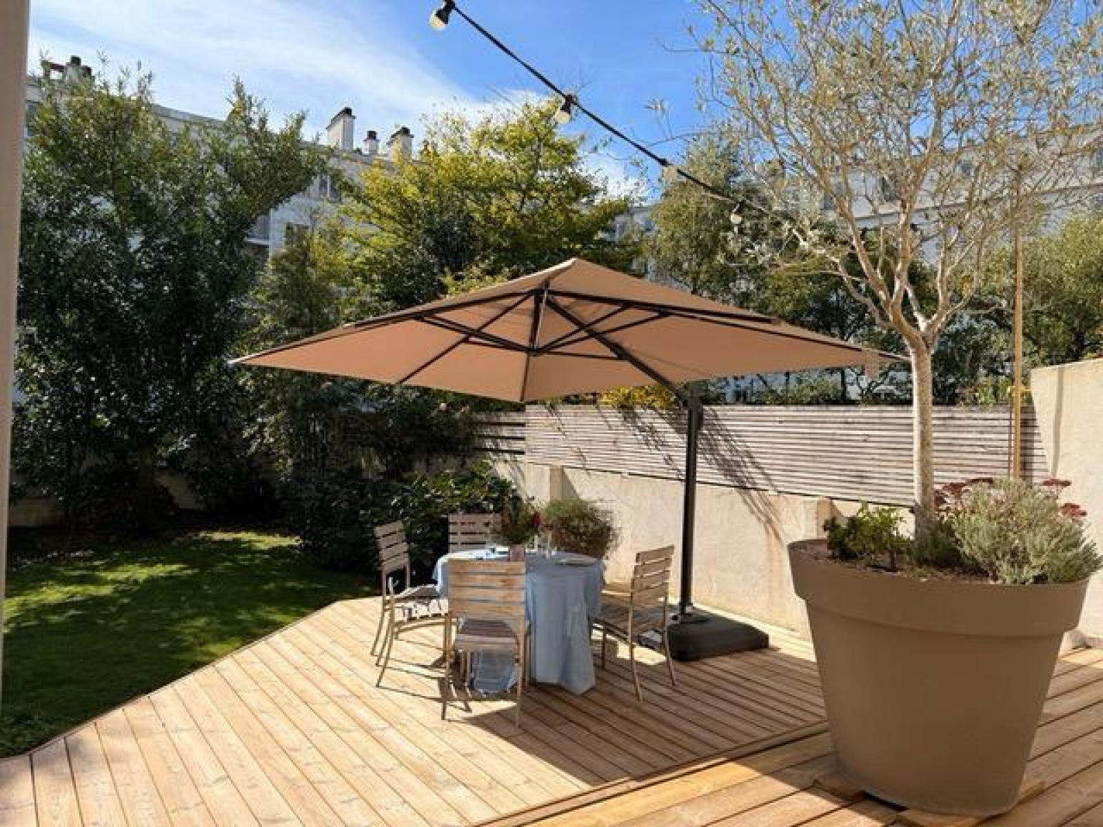 Au premier étage de plain pied sur la terrasse, un salon séjour (66m²) traversant avec un espace bureau, une cuisine (18,64m²) avec un accès au jardin.