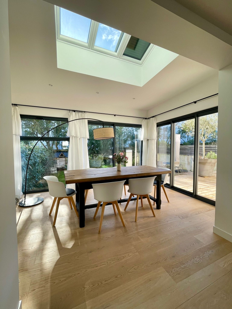 Cette maison très lumineuse offre de très beaux volumes, une cheminée et une belle hauteur sous plafond.